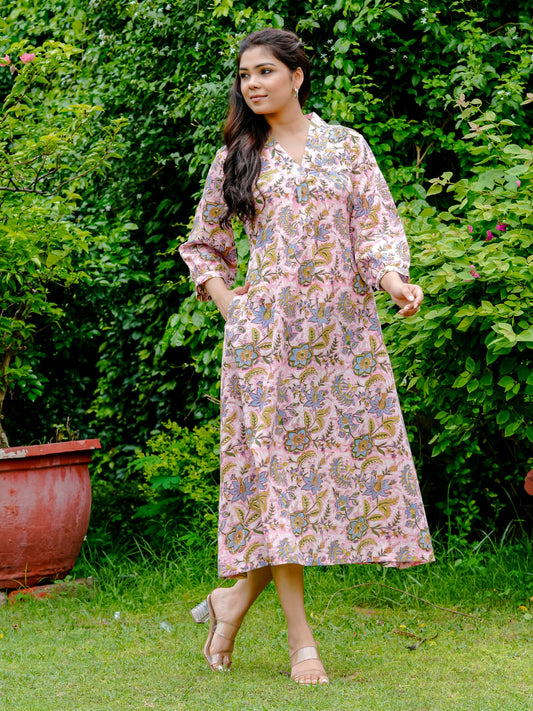 Darzaania Poorvi Block Print Cotton Dress
