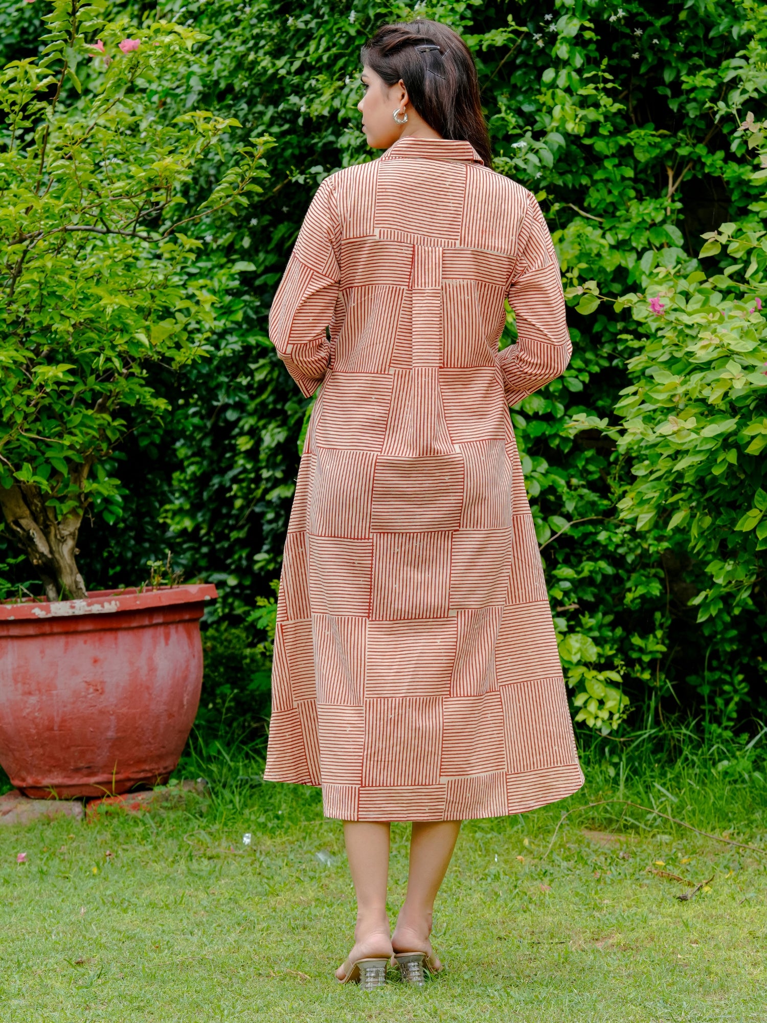 Step out in style with the Avni Collared Button Down Dress! Crafted from pure cotton, this dress features charming red block-printed stripes and handy pockets for your essentials. Its playful button-down design adds a fun twist to your everyday look, keeping you comfortable and effortlessly chic all day long.