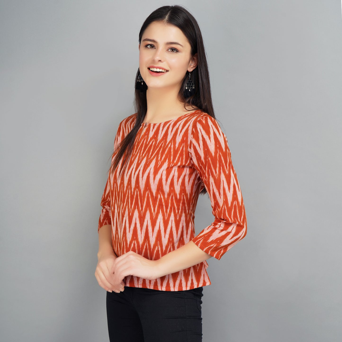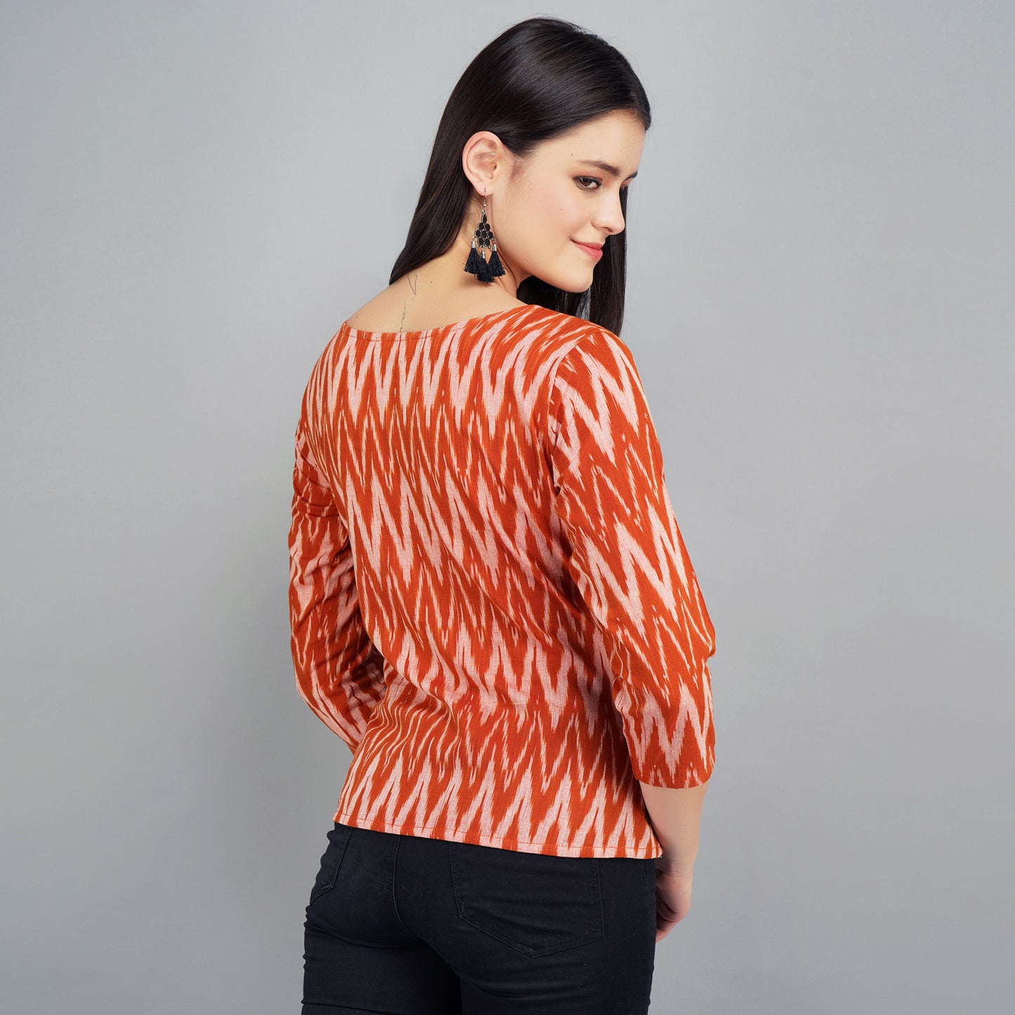 Brown Ikat Cotton Top. Work Wear, Casual wear, Party wear, smart pure cotton top for women.