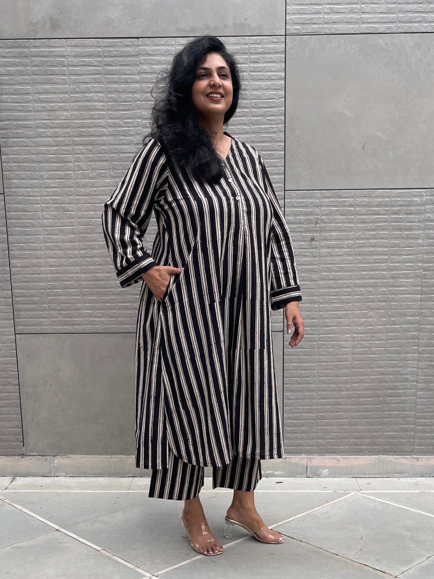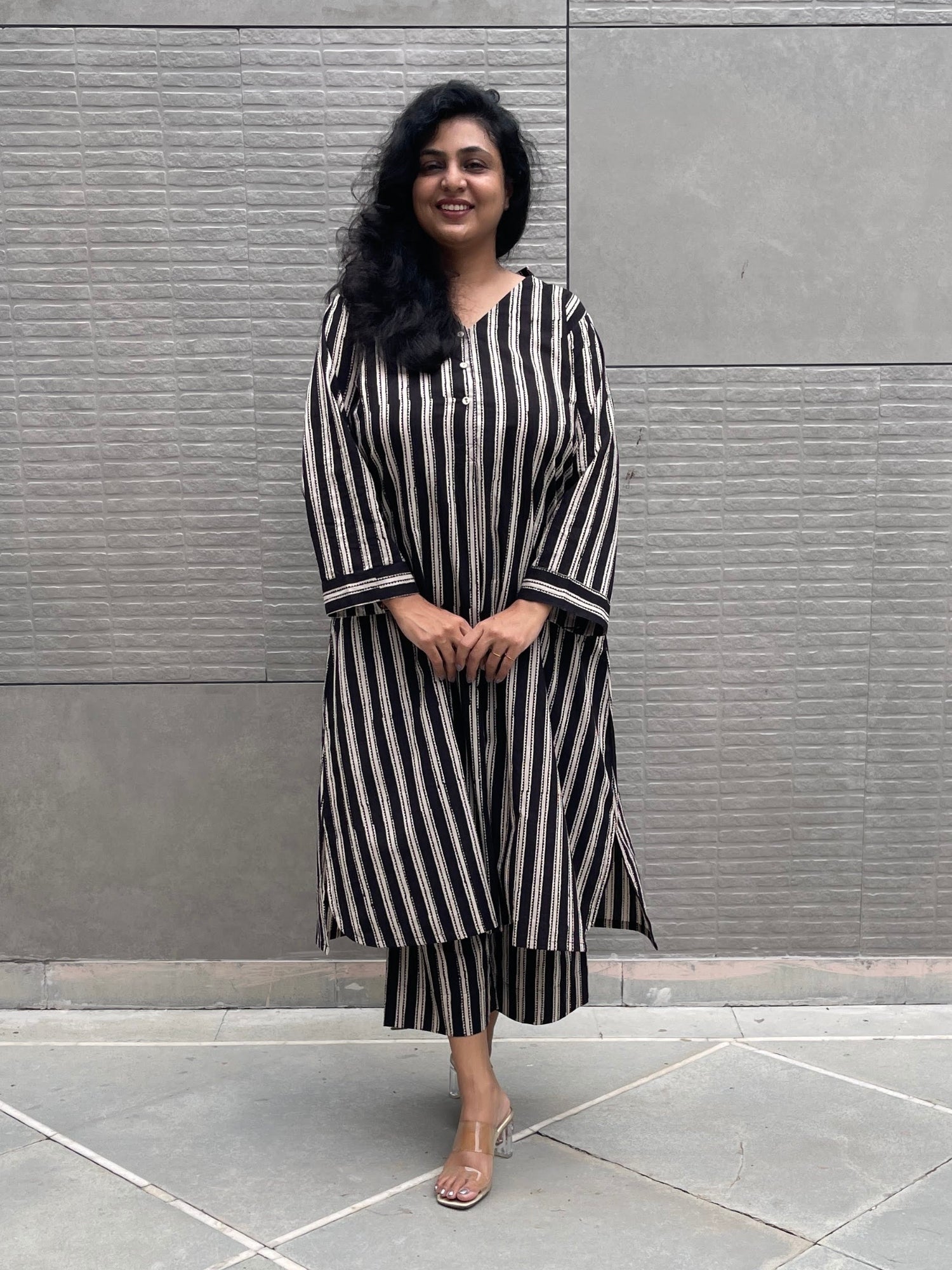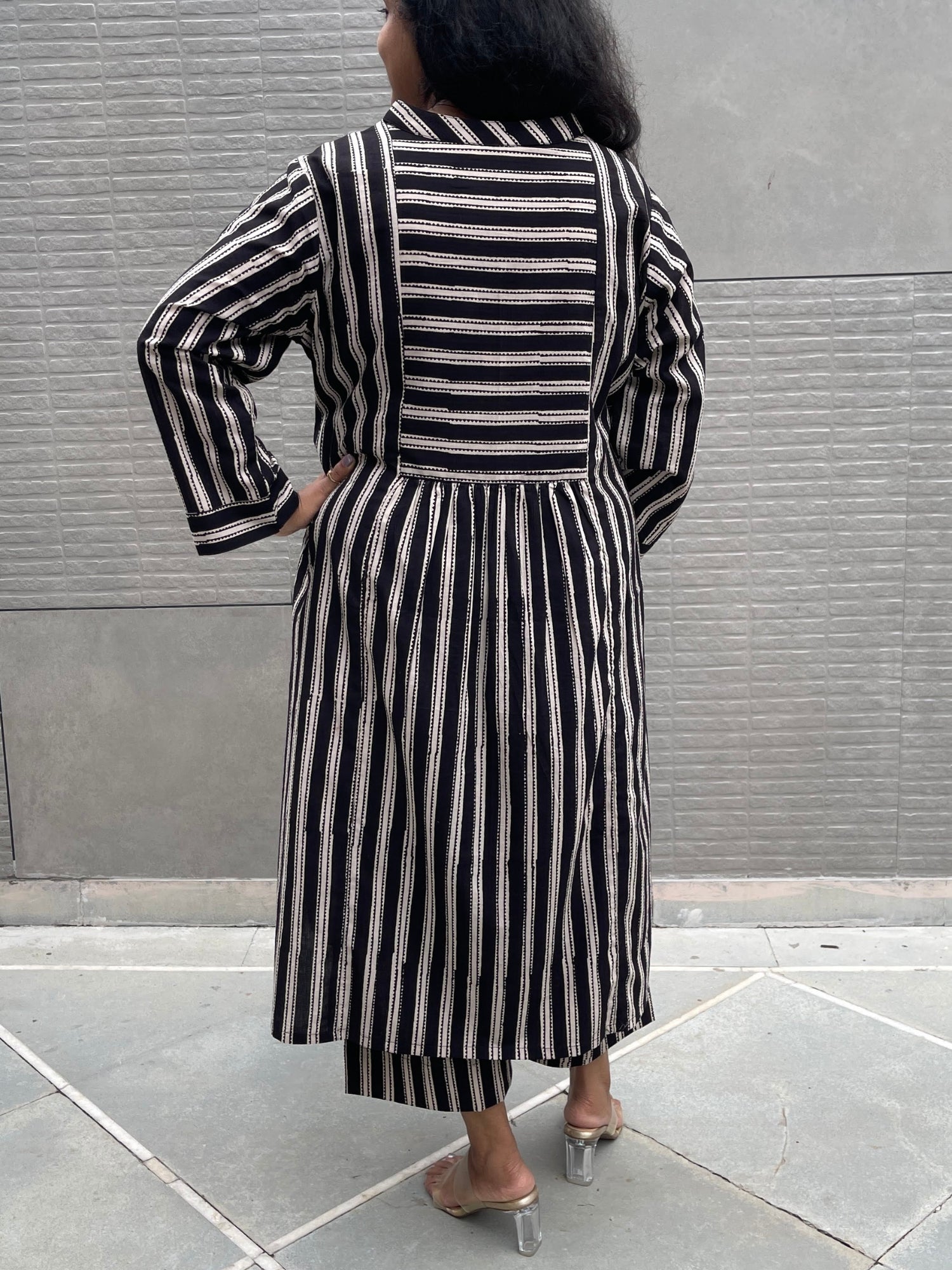 Darzaania Mehak Black Striped Handblocked Cotton Co-ord