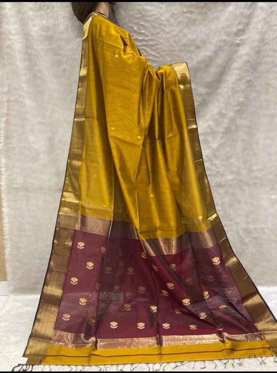 Discover exquisite beauty with our Maheshwari Gold color Festival edition Saree, crafted from luxurious Maheshwari cotton silk. Embellished with a rich, heavy rose buta pallu, this saree creates a memorable look perfect for any celebration. Stand out from the crowd in gorgeous gold and experience exclusivity with our special edition.